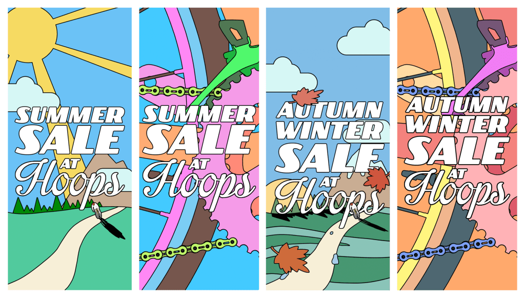Hoops (the branch near me specifically) is a bike shop here in Surrey that I work with. For the most part I’ve worked on their Instagram account, but there has been a decent chunk of visual merchandising in the mix too.
